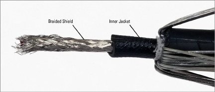 5.Remove the paper and 25 mm (1 inch) of inner jacket to expose the braided shield.